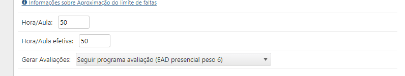 Na matrícula, a carga horária EAD total permitida para o aluno estará condicionada ao valor estabelecido no cadastro do currículo.