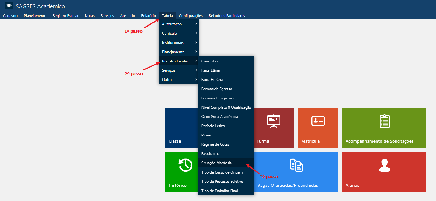 Menu da Tabela Situação Matrícula