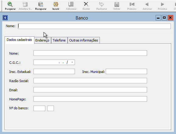 Cadastro > Banco.
