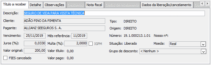 Caso o usuário deseje visualizar o resultado da liberação acesse a interface de Títulos a receber ou Títulos a pagar, a depender do tipo do título que foi liberado, e pesquise pelo título, os dados fornecidos de liberação poderão ser visualizados para cada título na pasta Dados da Liberação/Cancelamento e na situação como Liberado.